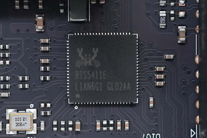 SATA接口左侧可见另一颗瑞昱USB3.2 Gen1x1超高速USB控制器RTS5411。左下角一颗12MHz晶振。