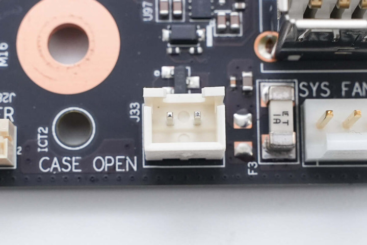 视角逐步在向左下移动,可见一个入侵检测接口,可用于指示机箱是否非法开启。