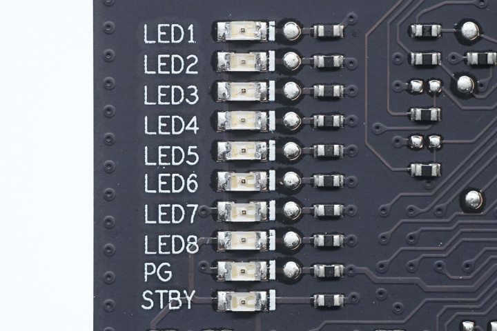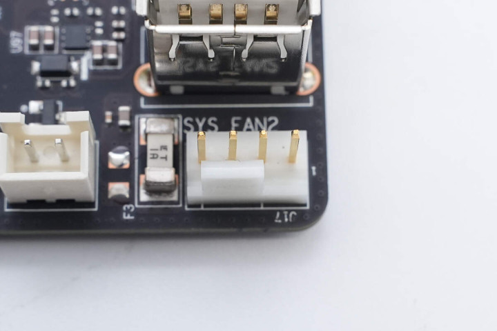 简单看过产品外观布局,下面我们继续从左上开始来看主板接针、电源供电接口分布情况。