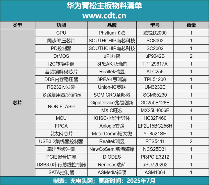 最后附上华为青松主板核心器件清单,方面大家查阅。
